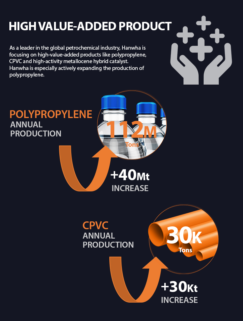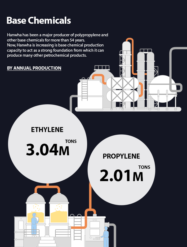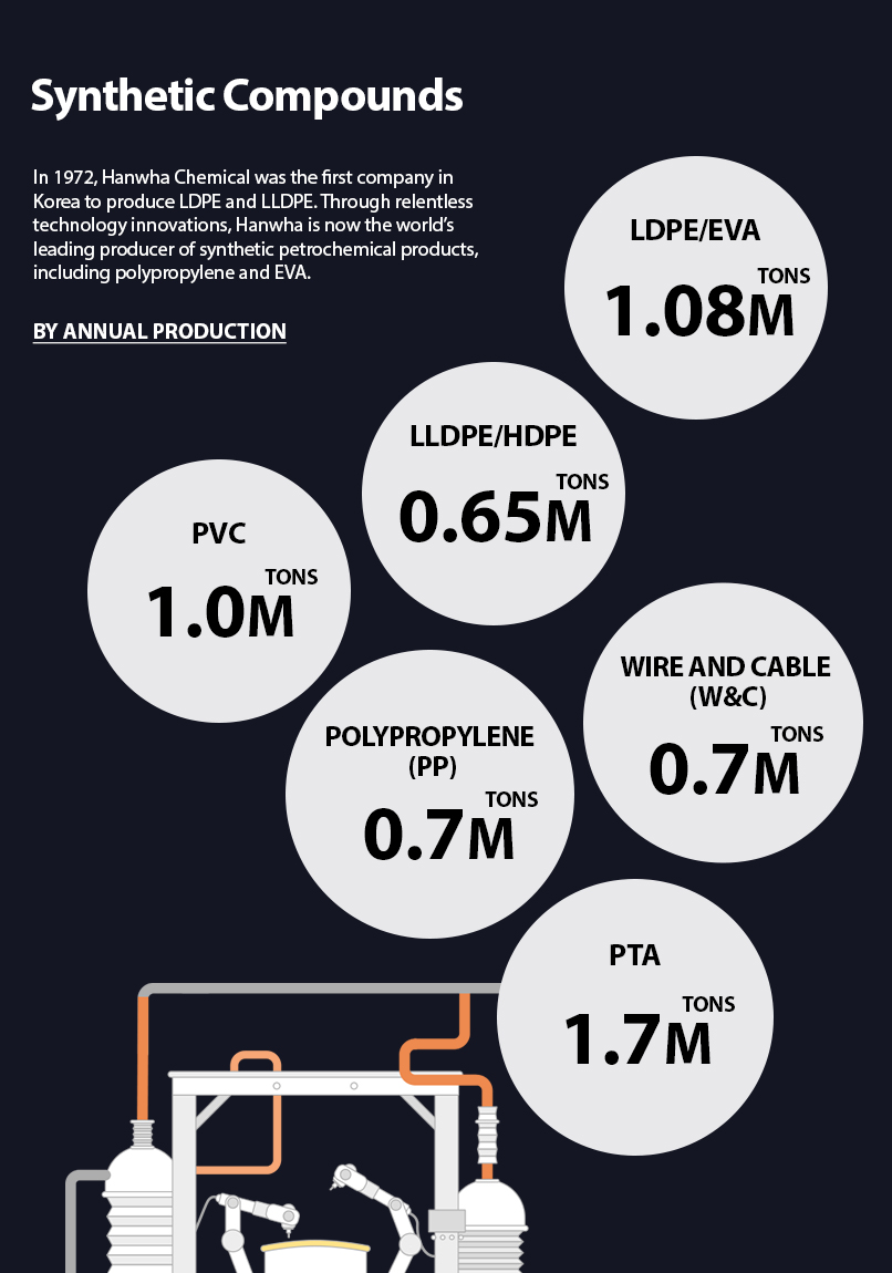 Since entering the petrochemical market in 1965, Hanwha has grown into a major player in a highly competitive global market through vertical integration, optimized production processes, and strategic investments.